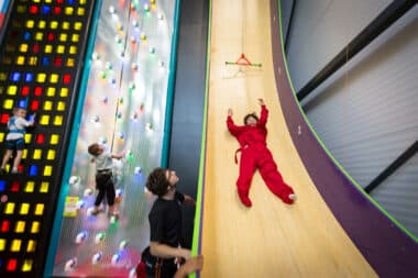 Dans cet espace pensé pour tous, les enfants découvrent l’escalade de manière ludique et sécurisée.