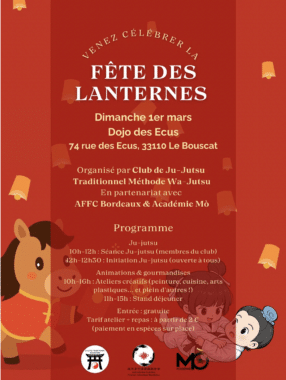 Organisé par le Club de Ju-Jutsu Traditionnel Méthode Wa-Jutsu en partenariat avec AFFC Bordeaux et l’Académie Mò, l’entrée est gratuite, avec des ateliers et formules repas à partir de 2 €.
