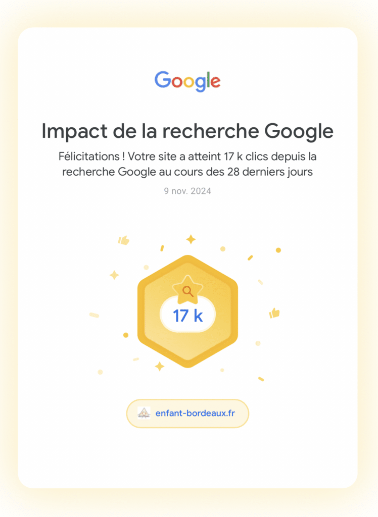 Vous avez été 17.000 à choisir enfant-bordeaux.fr lors de vos recherches Google pour répondre à vos interrogations ces 28 derniers jours. C’est ENORME !