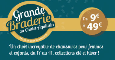 . - Grande braderie au Chalet Aquitain, Blanquefort, du ven 26 mars au mer 31 de 10h à 18h, Grande braderie avec des prix mini pour des chaussures de marque pour femmes et enfants, Gratuit