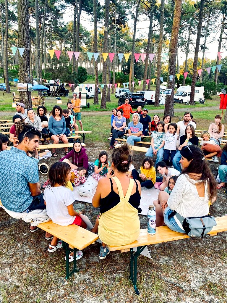 La journée c’est surf, cueillette de plantes, yoga sous les pins, balade à vélo entre les marées, slackline, paddle, pêche à pied, et cuisine sauvage. Chacun trouve son bonheur et avance à son rythme, porté par la douceur de la nature.