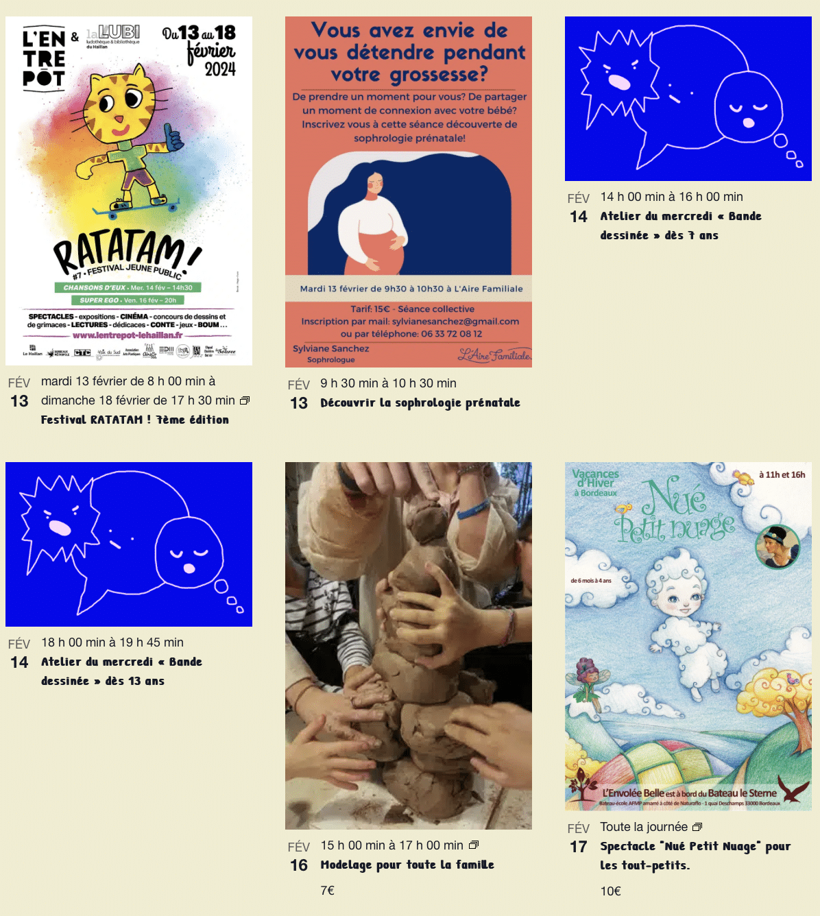 Vous organisez un évènement ? Publiez-le gratuitement sur l’agenda d’Enfant Bordeaux en cliquant ci-dessus, onglet « Publier un évènement »