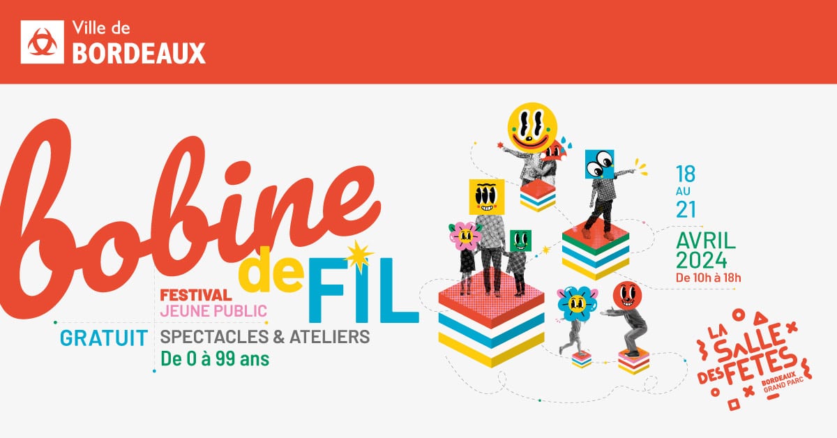 . - Festival Bobine de fil, salle des fêtes du grand parc à Bordeaux, du jeu 18 au dim 21. Découvrez la 2e édition du festival jeune public Bobine de Fil, avec spectacles et ateliers pour tous. Cet événement offre une programmation variée et conviviale. Profitez des BD animées, concerts, spectacles, ateliers créatifs et bien plus encore ! Réservation. Gratuit