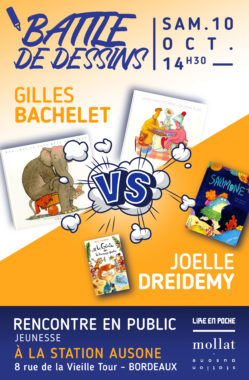 . - Battle illustration: c’est vous qui décidez, Mollat Bordeaux, sam 10 de 14h30 à 16h30, Imaginez vous-même la fin de l’histoire et les dessinateurs se battront pour faire la meilleure illustration. Des moments à passer en famille ou dans tous les cas avec vos proches, à partir de 7 ans, Gratuit
