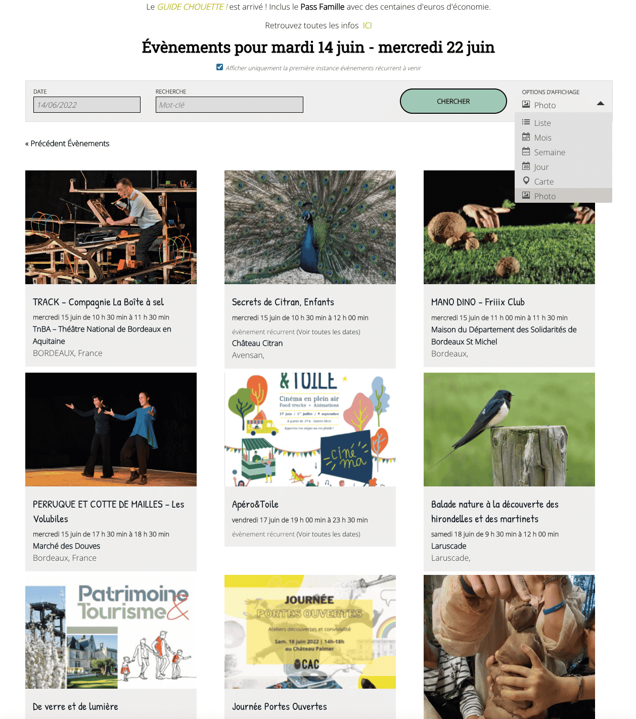 Je rappelle que vous pouvez avoir la vue mensuelle pour une vision d’ensemble ou par liste pour directement avoir le descriptif ou même par visuel (que j’aime beaucoup), il suffit de le sélectionner dans le menu de l’agenda.