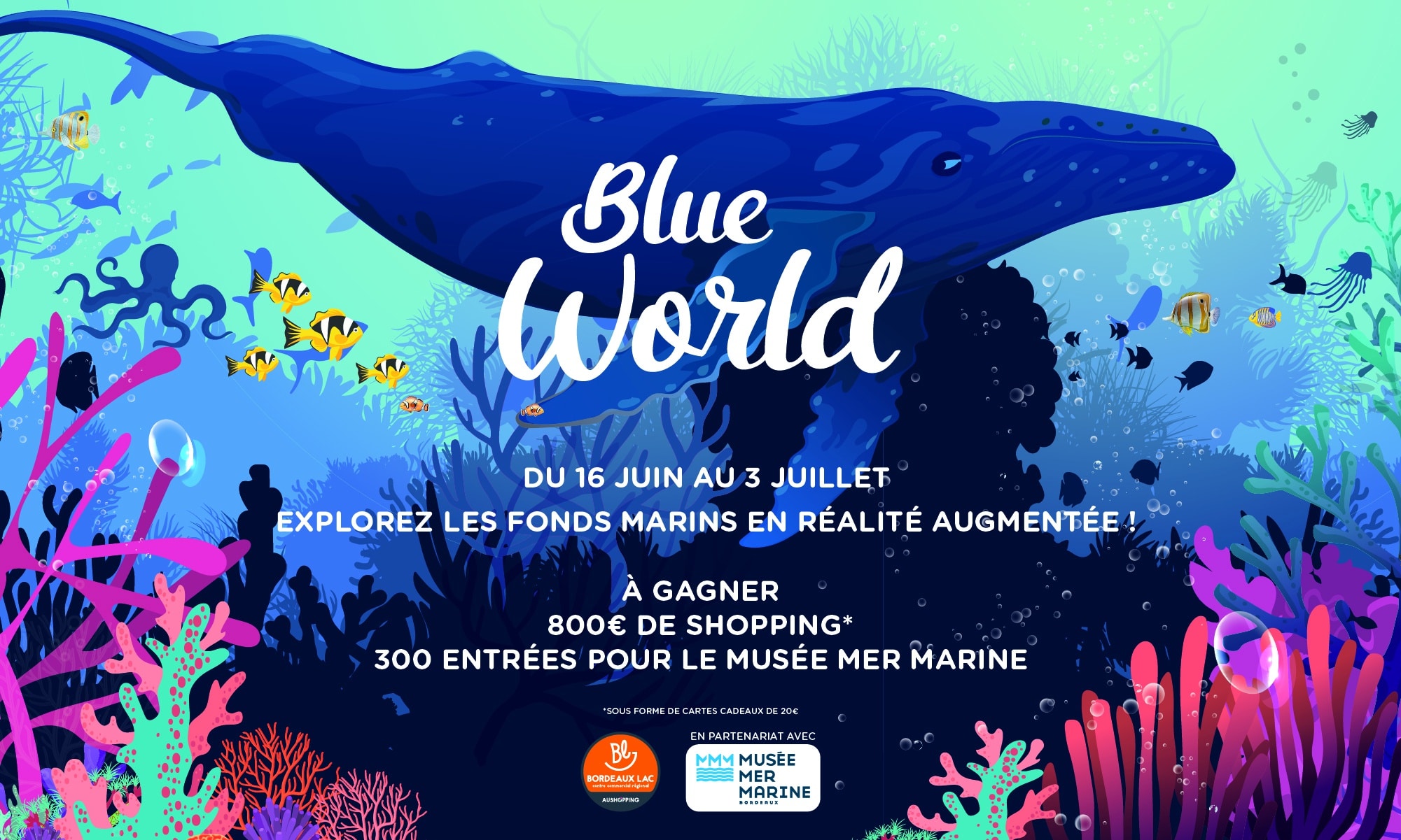 - Evénement Blue World, Centre commercial Bordeaux Lac, du 16 juin au 3 juil, sensibilisation à la pollution des mers & océans, en partenariat avec le Musée Mer Marine avec : jeu de piste digital, espace Photocall, tunnel sous-marin pour une immersion dans les fonds marins en réalité augmentée, Gratuit