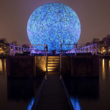 . Pour ouvrir le festival FAB le 30 septembre, soir de pleine lune, quoi de mieux qu’installer une deuxième lune pour que la magie perdure tout au long du festival ! Une gigantesque lune phosphorescente règne en maître au-dessus du Port de la Lune, paraissant presque aussi imposante que la vraie. Elle se charge tout au long de la journée de l’énergie rayonnante de la ville et une fois la nuit venue elle renvoie tout le souvenir de la folie du jour.