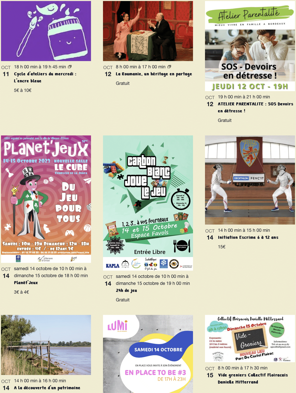 Activités et sorties à Bordeaux et Gironde du 13 au 18 octobre 2023