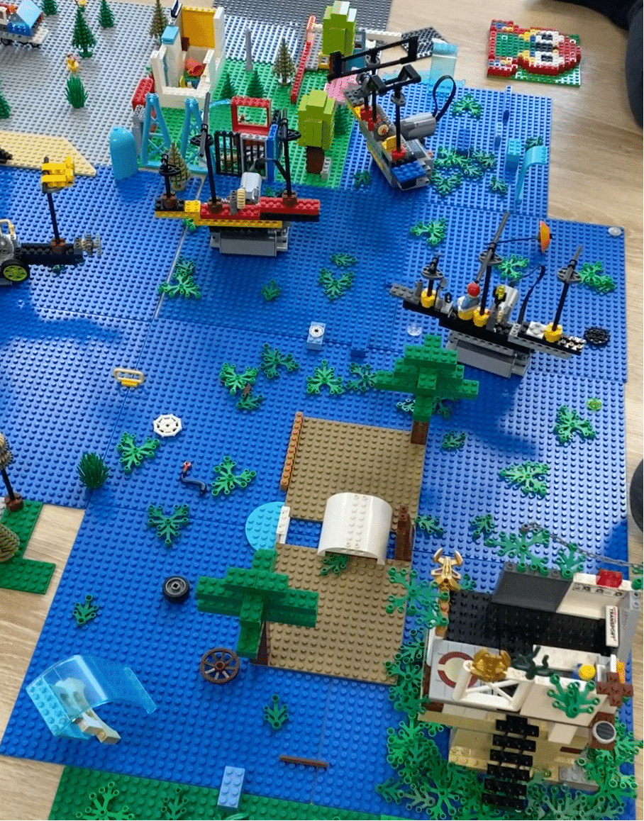 Tout au long de l’atelier, les enfants imaginent, construisent et inventent des scènes incroyables… jusqu’à créer ensemble une grande construction collective en fin de séance.