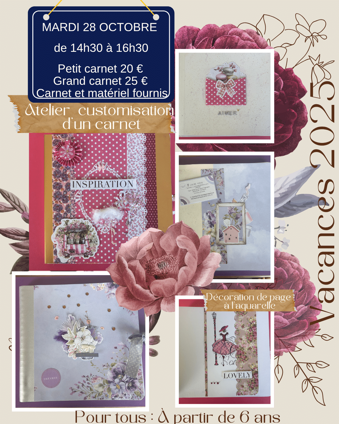 Mardi 28 octobre ; customisation d’un carnet : deux format au choix