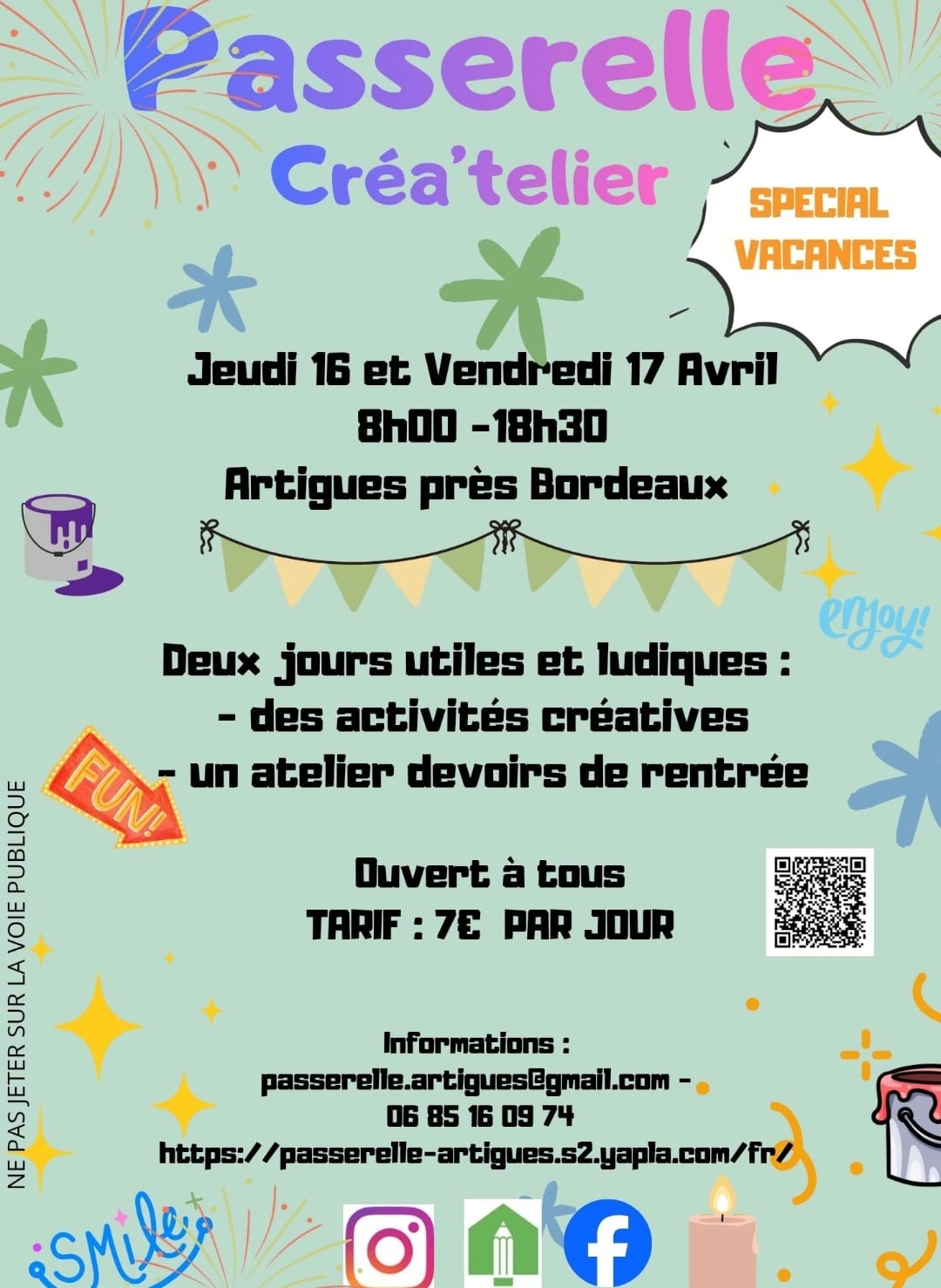 Avr 16 CREA’TELIER : DEUX JOURNEES POUR S’AMUSER – VENDREDI 16 ET 17 AVRIL 2026 16 avril - 17 avril artigues près bordeaux Détails des Évènement Recevoir l’Itinéraire à suivre
