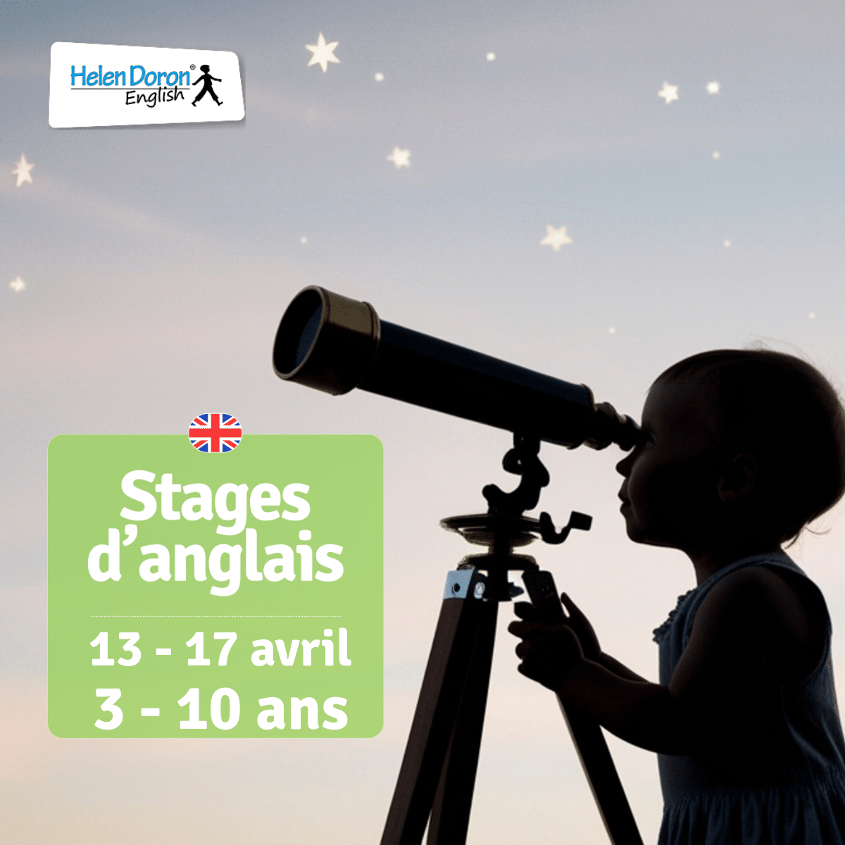 Avr 6 HELEN DORON ENGLISH – STAGES DE PRINTEMPS « ENGLISH FUN » – De la Maternelle au CM2 ! 6 avril à 9h00 - 10 avril à 17h00 Helen Doron English – Bordeaux 63 rue Paulin, Bordeaux Détails des Évènement Recevoir l’Itinéraire à suivre