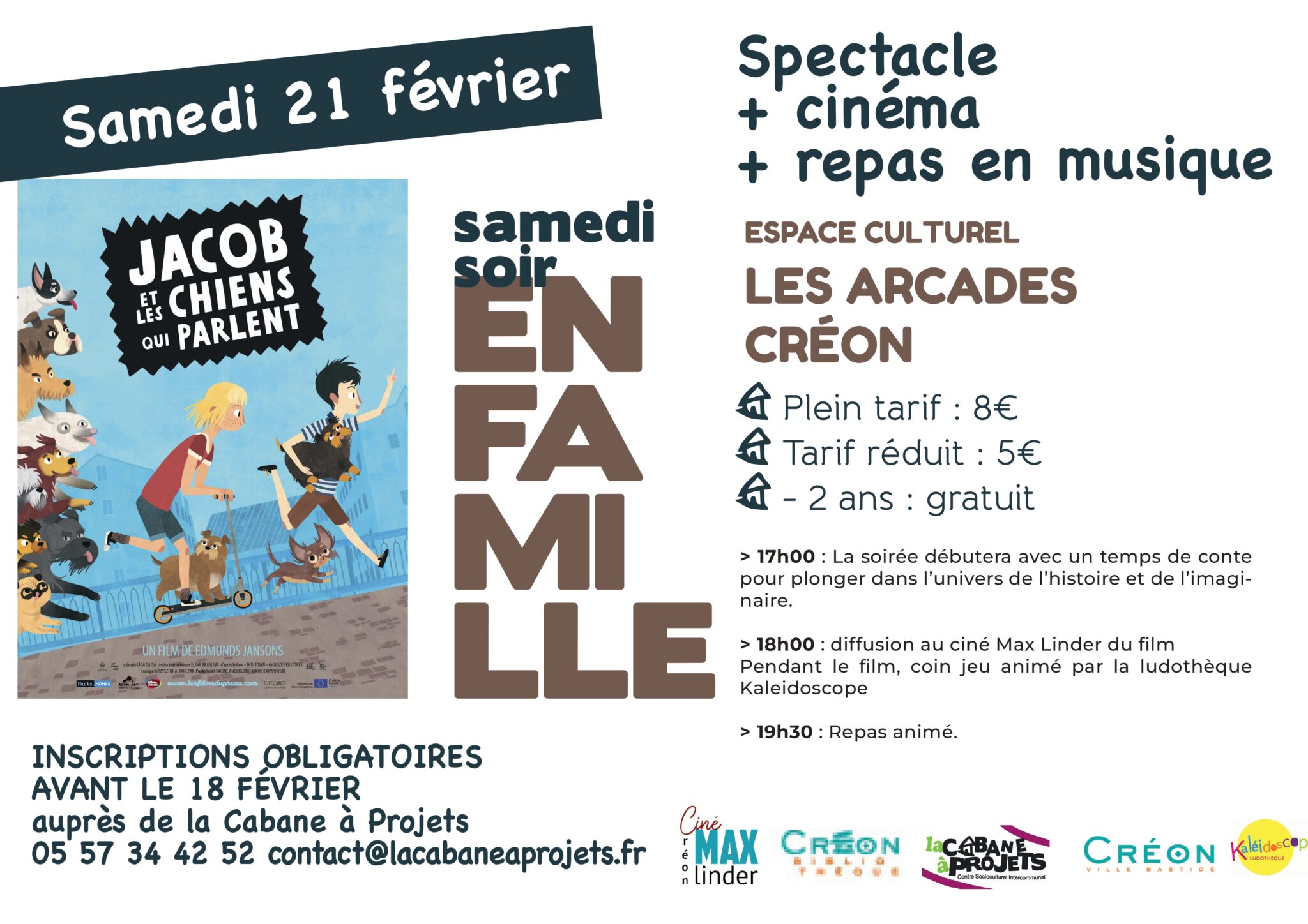 Fév 21 17h00 - 22h00 Un Samedi soir en famille Bibliotheque de Créon 1 rue Montesquieu, Créon +1 more Détails des Évènement Recevoir l’Itinéraire à suivre