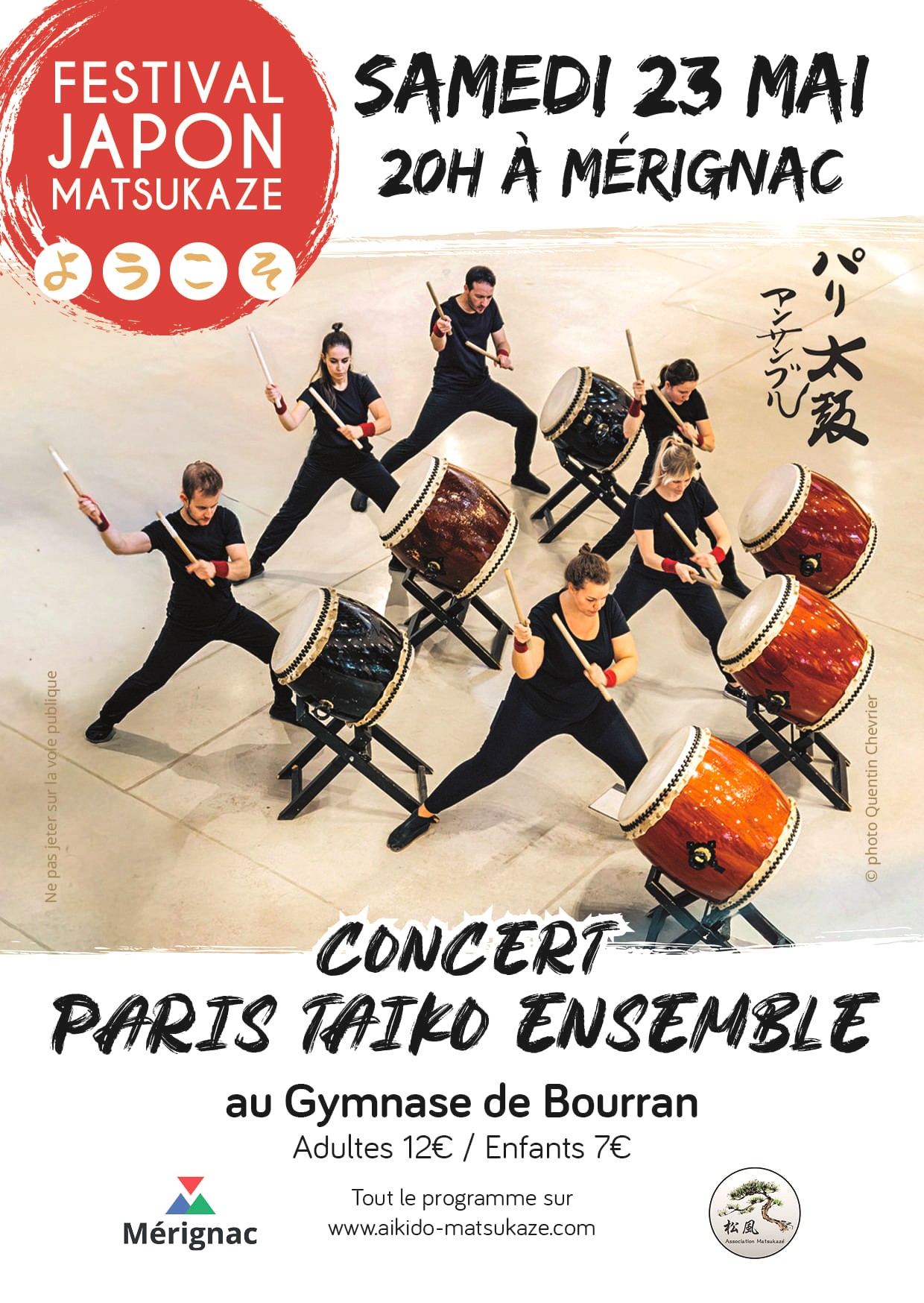 20h Concert de Paris Taiko Ensemble, les tambours du Japon 12€ adultes / 7€ enfants (- de 13ans) Règlement du concert sur place ou sur Hello Asso