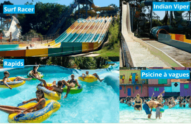 Les sensations sont au rendez-vous : descentes vertigineuses sur le Boomerang, moments calmes dans la rivière lente. Les 14 attractions, sont classées par niveau : « Thrill » pour ados et « Family » pour tous et ça c’est cool pour s’y retrouver ! Certains sanitaires nécessitent une amélioration … mais bon, le parc reste une valeur sûre pour une journée aquatique en Gironde.
