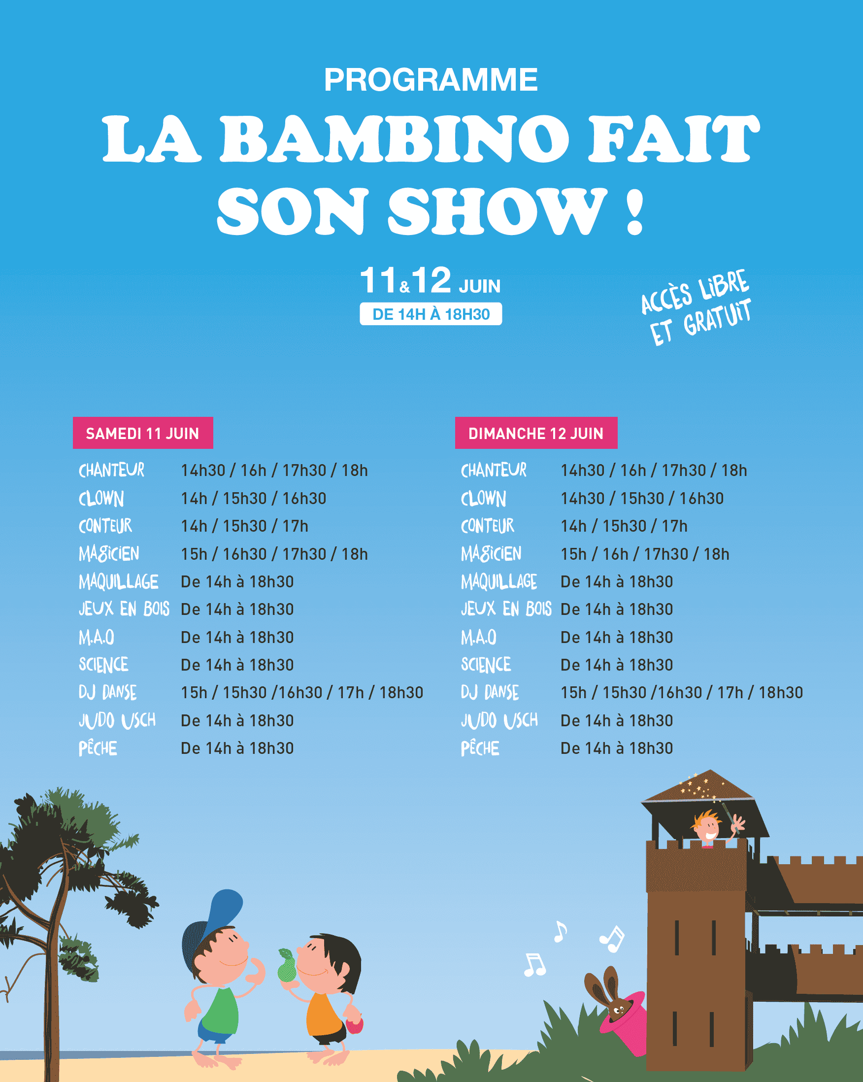 Par ici le programme de la Bambino fait son show 2023 à Hourtin :