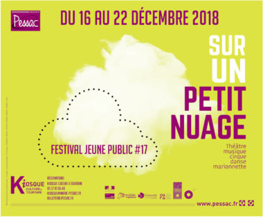 - Festival « Sur un petit nuage », Pessac, dim et jusqu’au 22/12, 14 spectacles, une chasse au trésor,une méga boum, 3 expo et des ateliers :D réservation conseillée et obligatoire (selon programme), 5€/8€