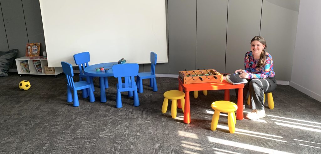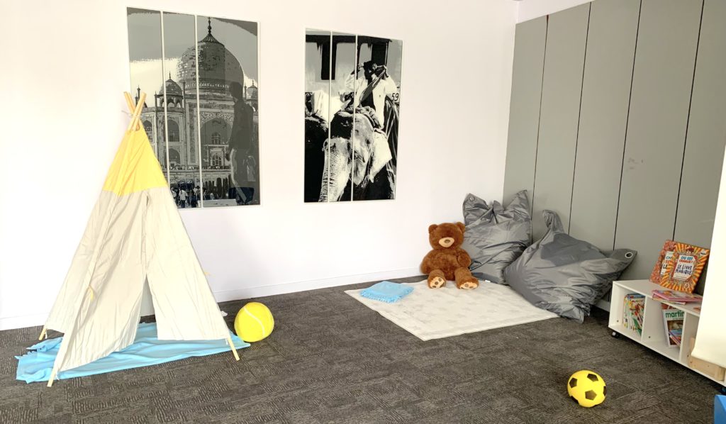 Vous avez un espace table à langer pour changer le petit dernier et une tente aménagée avec plein de jeux pour occuper les plus grands (trop top !).