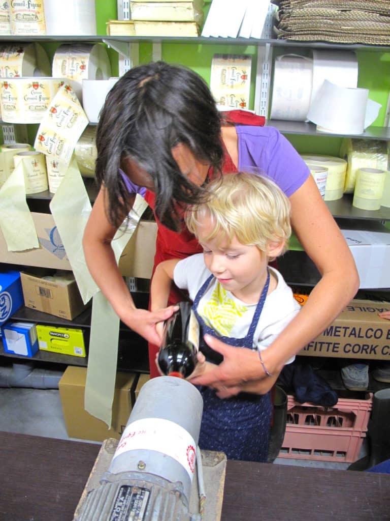 Chaque enfant mettra une étiquette sur une bouteille et la capsulera avec la machine (ils adorent ! )