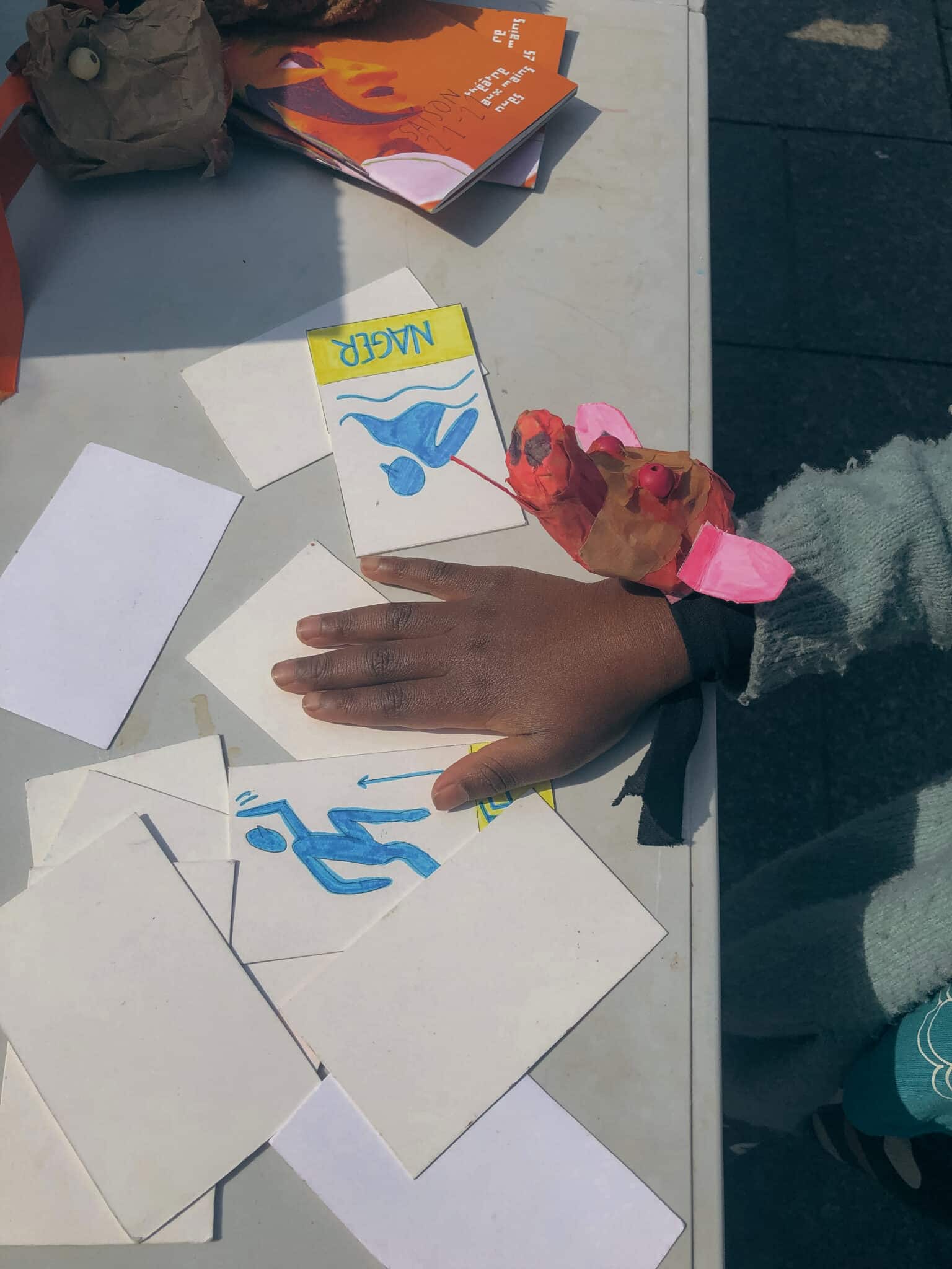 Lors de cet atelier, il est possible de fabriquer une marionnette à main en utilisant du papier kraft et des accessoires divers, tout en découvrant les bases de la manipulation. Le tout se termine par un jeu d’improvisation sans mots, où des cartes d’action spécialement conçues viennent nourrir l’imagination.