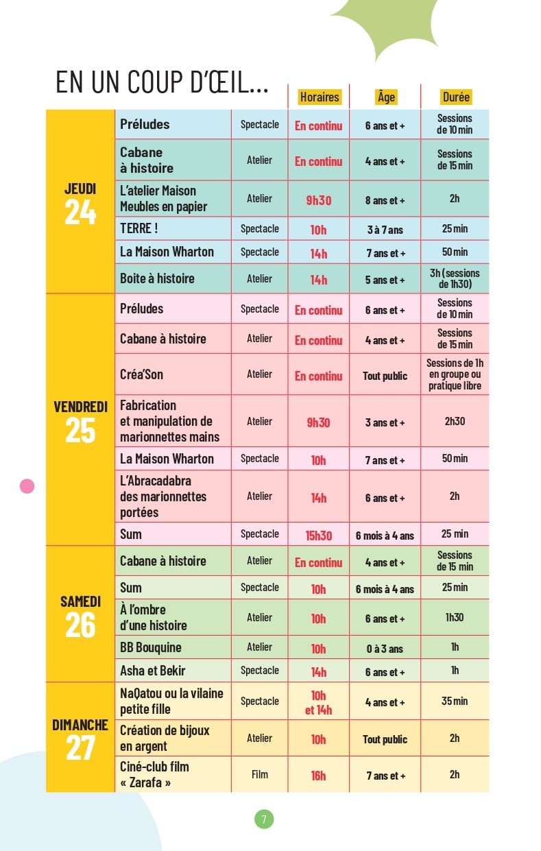 Curieux de savoir ce qui vous attend ? Spectacles, ateliers, âges recommandés… Je vous dévoile tout !