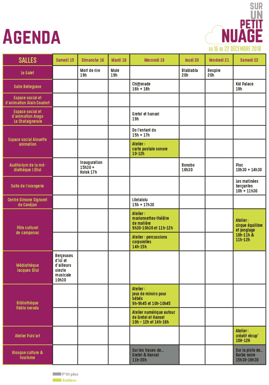 5.FESTIVAL « SUR UN PETIT NUAGE » : LE PLANNING
