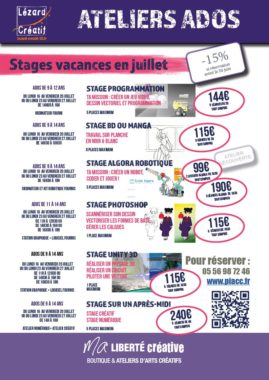 Et profitez d’une réduction de 15%, en réservant avant le 30 juin, sur tous les stages de notre partenaire LEZARD CREATION.