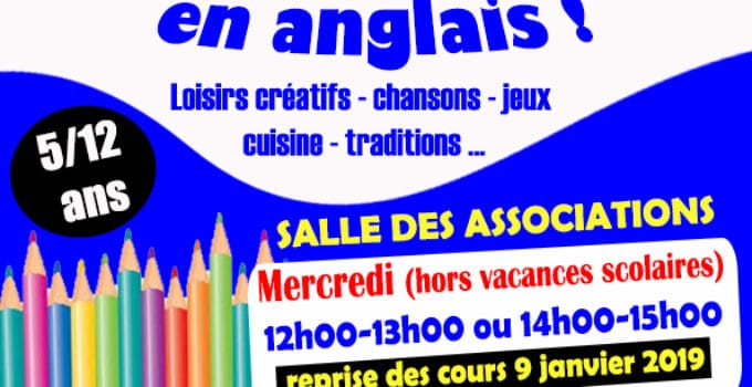 Une fois par semaine, viens te plonger dans un bain de langue anglaise avec Sue Cox, d’origine anglaise. Tout est prétexte pour parler, chanter, découvrir, jouer en anglais !!! …