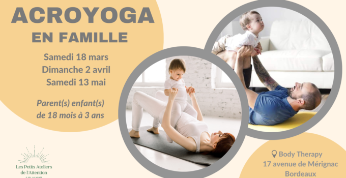 Venez tester l’acroyoga en famille ! Discipline qui allie yoga, acrobaties ludiques et massages. À travers les jeux et les portés, l’acroyoga invite à développer l’équilibre, la conscience corporelle …