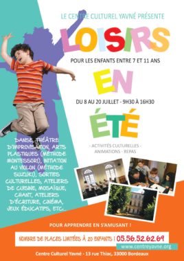 Le centre culturel Yavné propose à vos enfants, de 7 à 12 ans, deux semaines d’école des loisirs ! :D
